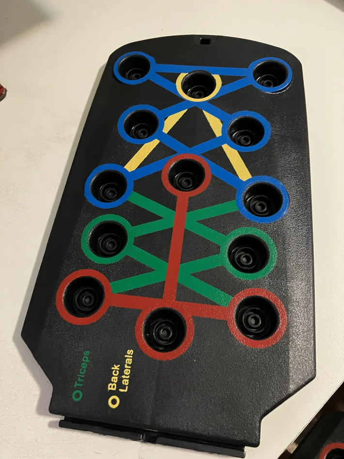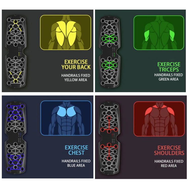 Divided into 4 colors, representing 4 different muscle group exercises for easy visualization.